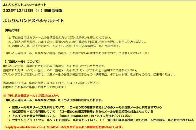 よしりんバンドスペシャルナイトの募集締切日は明日11/25(火)正午まで!