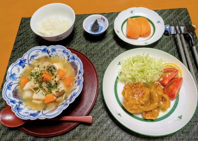 *鶏肉のオレンジ煮&千切りキャベツ·トマト
