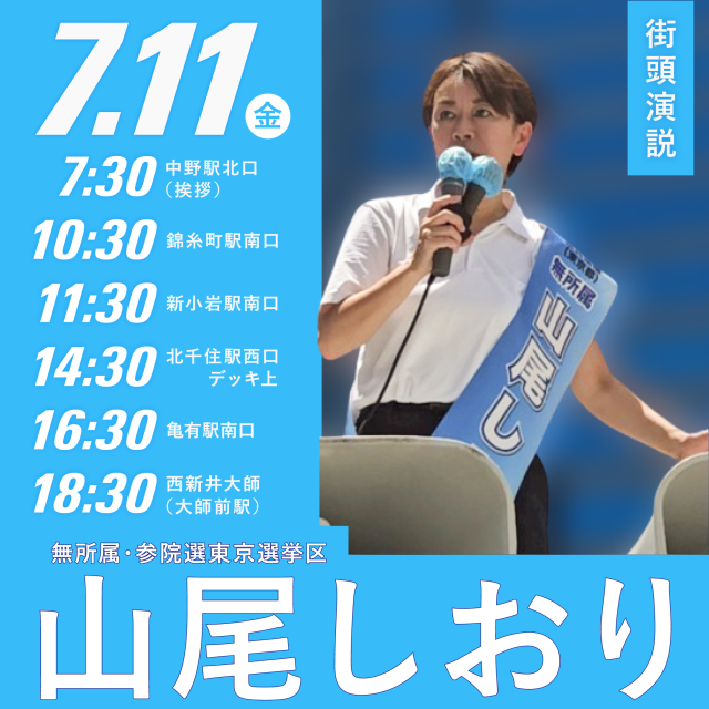 輝きが増す山尾演説! 明日は23区東部戦線!