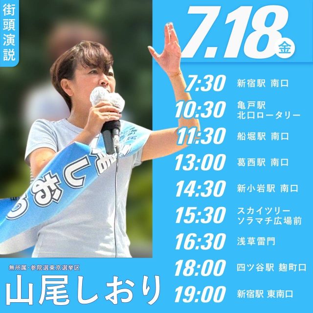個人の票の行き先は、最後の3日で決まる!山尾しおりさん18日は23区東部戦線!