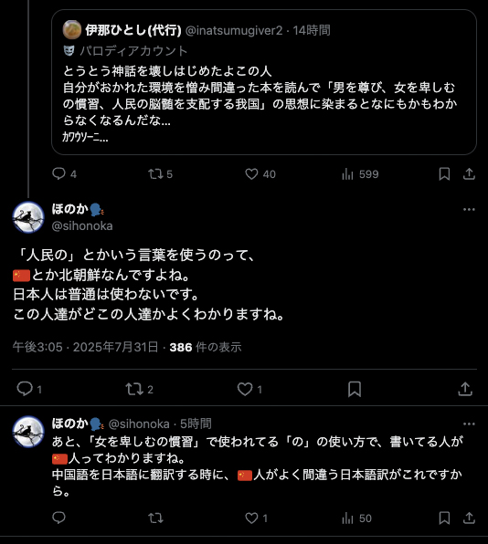 だけど、こんなに中国や朝鮮へのヘイトをむき出しにしている人物が、儒学や漢学の影響が色濃い男尊女卑思想に基づく男系男子限定に固執するって、何で自己矛盾を感じないんだろう?