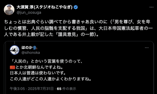 自分が「井上毅を中国人認定した事」をすっかり脇において、だいぶ恥ずかしい強弁を。