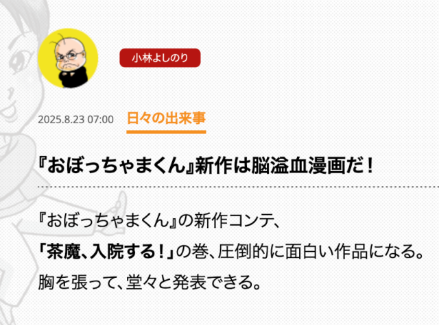 『おぼっちゃまくん新作は脳溢血漫画だ!』8月23日ブログより