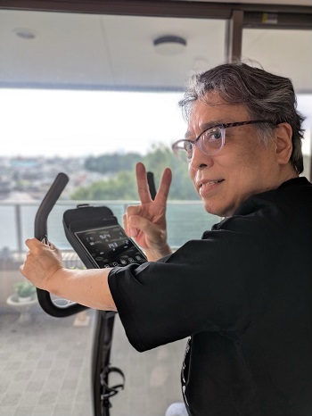 時速15キロで10分、エアロバイクをこいだ。