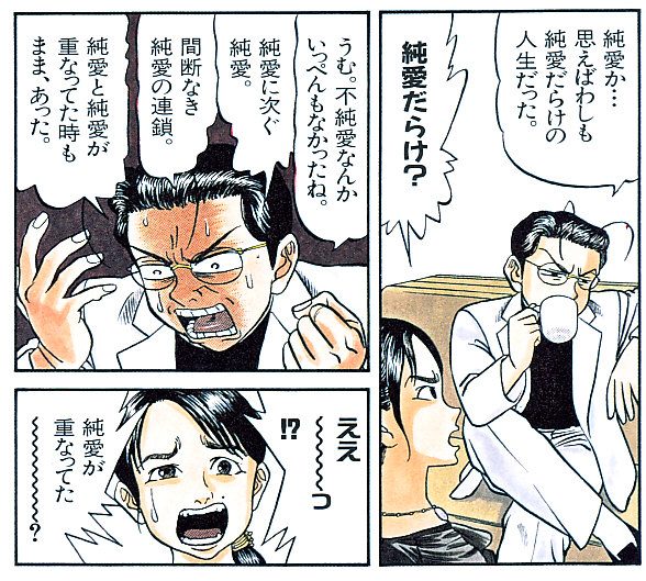 確か「わしは純愛しかしてない。純愛に純愛が重なったことも、ままあった」「純愛が重なってたぁ?」みたいなセリフだったかと…