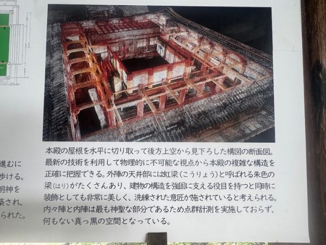 本殿の真ん中は、何もない真っ暗な空間となっている。