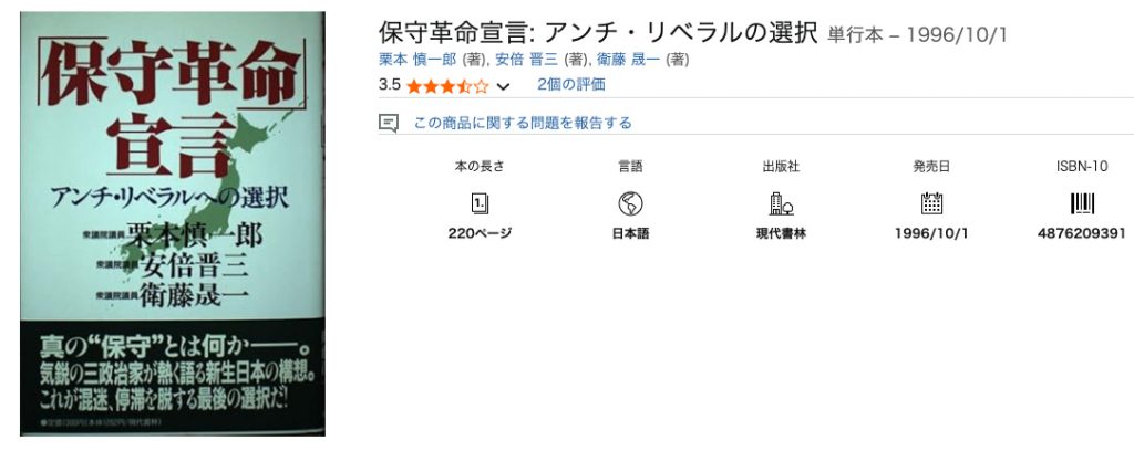 「保守革命宣言:アンチ・リベラルへの選択」怖いもの見たさで読んでみたいけど、部数が少ないのか古本は異様に高いので、図書館を探して読んだらまた報告します。