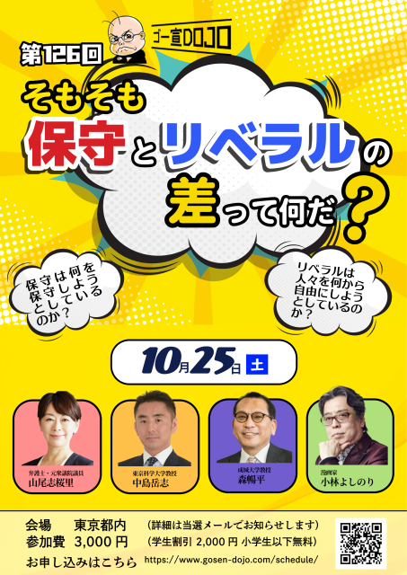 10月25日のゴー宣DOJO「そもそも保守とリベラルの差って何だ?」では、「保守」と「リベラル」の違いを徹底的に議論します!