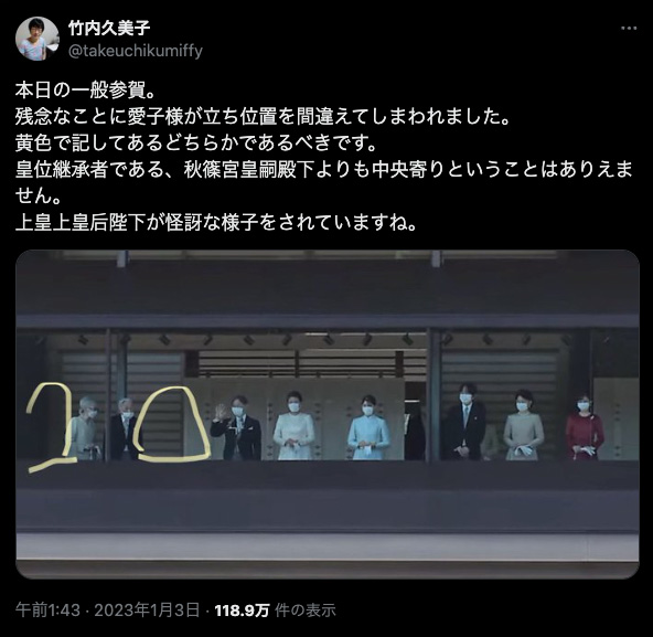度重なる愛子さまへの陰湿な誹謗中傷も含め、竹内久美子は皇室バッシングの第一人者・最悪の逆賊と言えるでしょう。