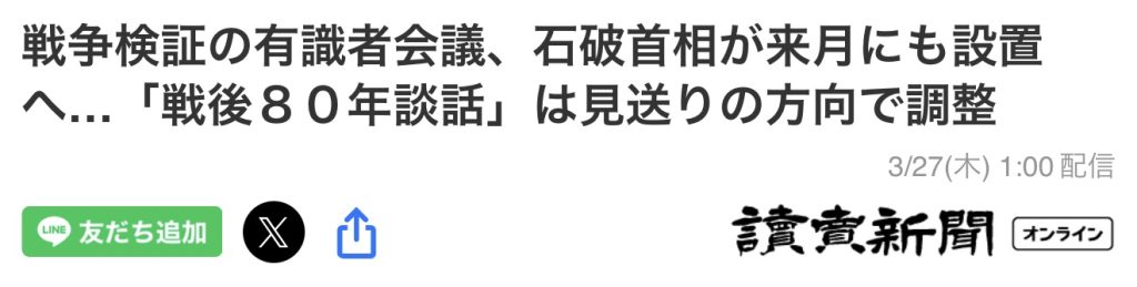大東亜戦争の敗戦から今年で80年ですが、政府は先の戦争を検証する「有識者会議」を立ち上げるそうです。