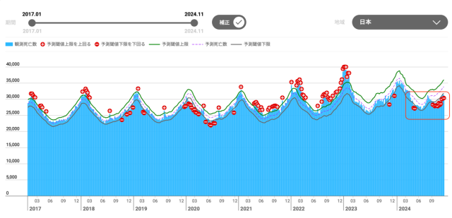 ※③)日本の超過および過少死亡数ダッシュボード(国立感染症研究所)