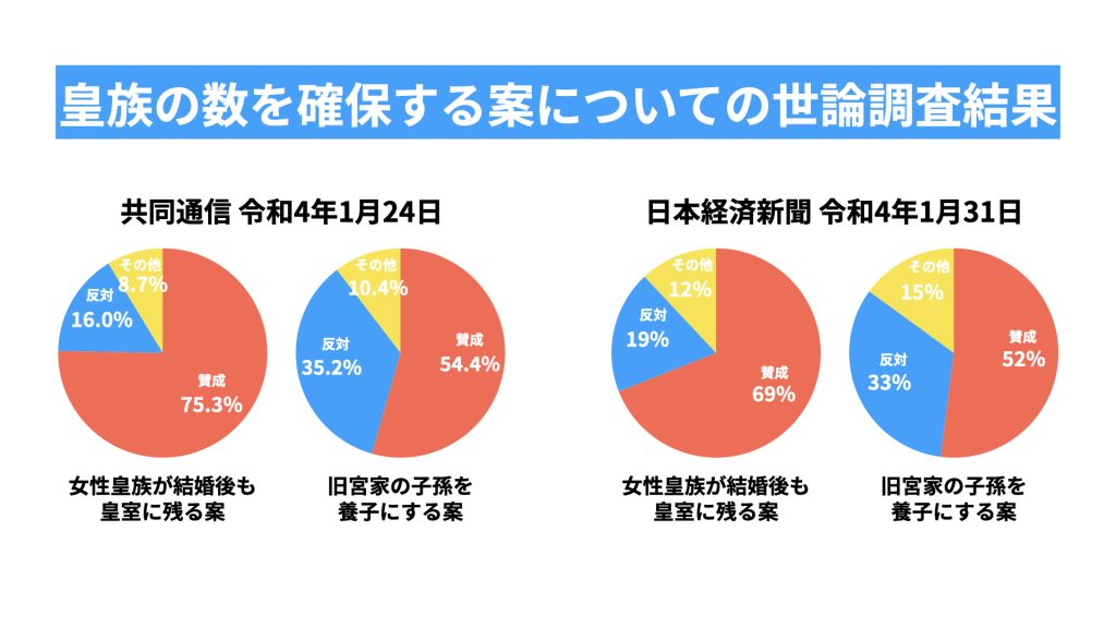 しかし本来、この調査はどちらも「女性皇族が結婚後も皇室に残る」案とセットで行われています。