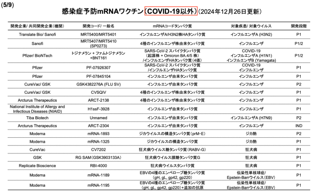 ※①)臨床開発中もしくは既承認のmRNA医薬(国立医薬品食品衛生研究所遺伝子医薬部)