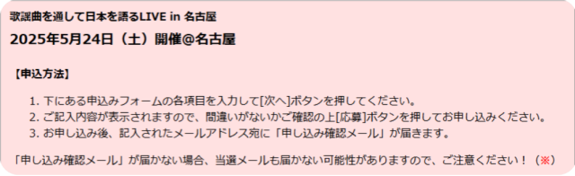 ■場所:名古屋市内 ※当選メールに詳細を記載いたします。