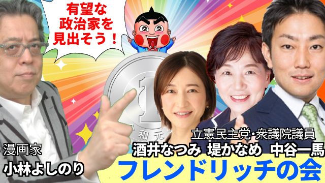 小林よしのりという、一切党派のしがらみとは関係ない表現者の前に個人をさらして、その人柄を不特定多数の視聴者に評価されることを恐れないし、むしろそれができる人こそが国会議員たりうると自覚されている方々なのですから!