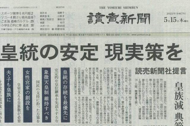重ねて言います。読売新聞は、いま進められている策は「皇統の安定にとって現実策ではない」と断じたのです!