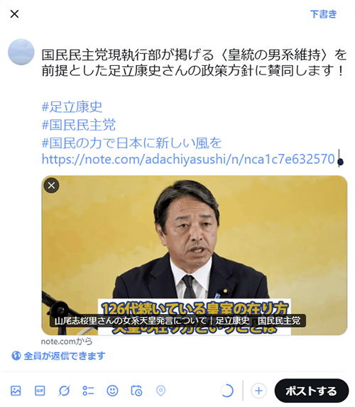 “国民民主党現執行部が掲げる〈皇統の男系維持〉を前提とした