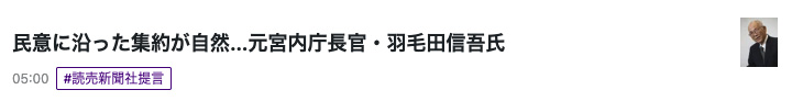 読売新聞に「民意に沿った集約が自然…元宮内庁長官・羽毛田信吾氏」という提言記事が掲載されました。