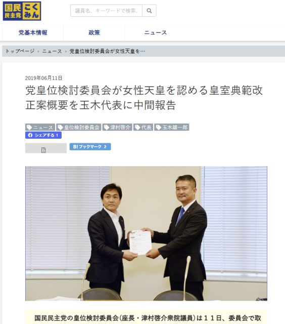森暢平氏によれば、旧国民民主党時代の皇位検討委員会では、