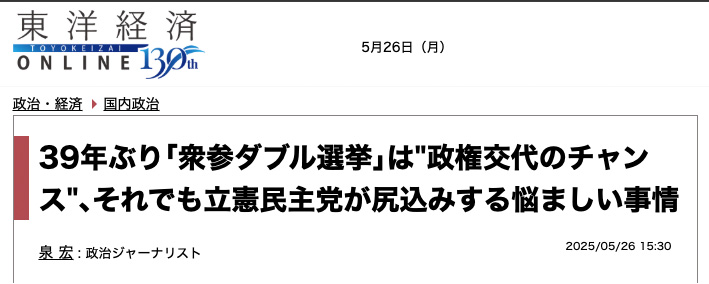 実現可能性は決して高く無いと思いながらもあえて言えば、「安定的な皇位継承」が大きな争点になりながらダブル選挙が行われたら、凄い展開になると思うんですよね。