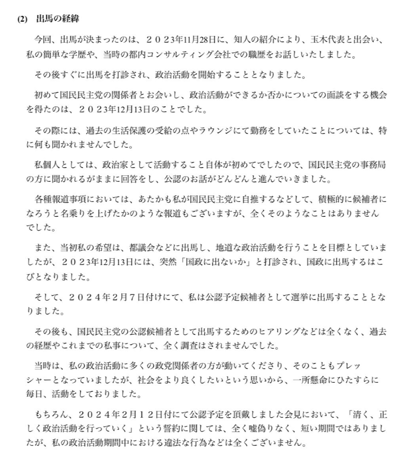 自ら命を絶った理由の核心を知る事は不可能ですが、高橋氏が擁立されるに至った経緯は、公認取り消し時の高橋氏の声明文から知る事ができます。