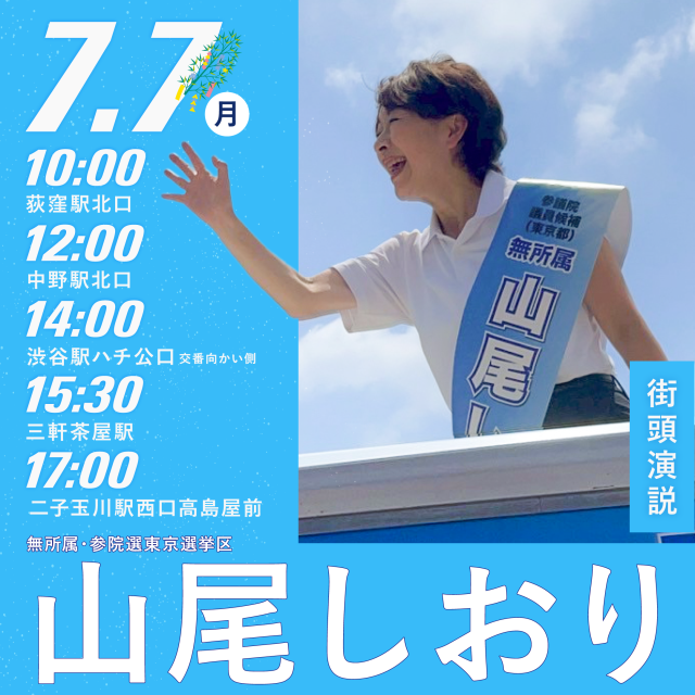 本日の山尾しおりさん街頭演説は、23区西側地域です。