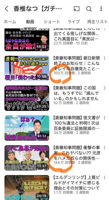 YouTubeで『エルデンリング』というゲームの話だけしてた人が、兵庫県知事のことを取り上げたら再生数が10倍100倍になって、味をしめて政治系に転向してました。