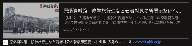 広島の原爆資料館(平和記念資料館)に、混雑への対応策として、修学旅行生など若い世代を対象にした新展示が作られるそうです。