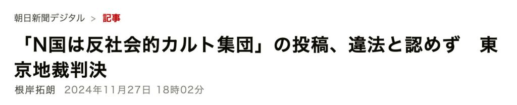 Xへの投稿で「反社会的カルト集団」と呼ばれた事を名誉毀損として、 「NHKから国民を守る党」(以下、N国党)が「選挙ウォッチャーちだい」氏を訴えていた裁判で、東京地裁が請求を棄却した事が話題になっています。