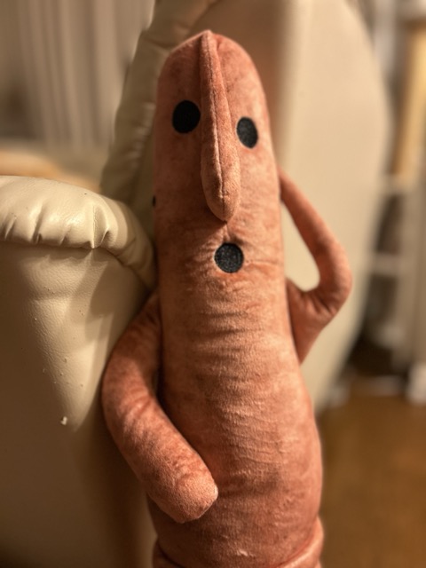 踊るはにわのぬいぐるみ。