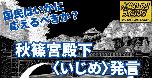 …秋篠宮殿下のお誕生日に際した記者会見における「皇族は生身の人間」「バッシングというよりいじめ」というご発言は衝撃的ではあったが、当然の発言だとわしは思った。だが、週刊誌は絶対にそのようには受け止めなかった。