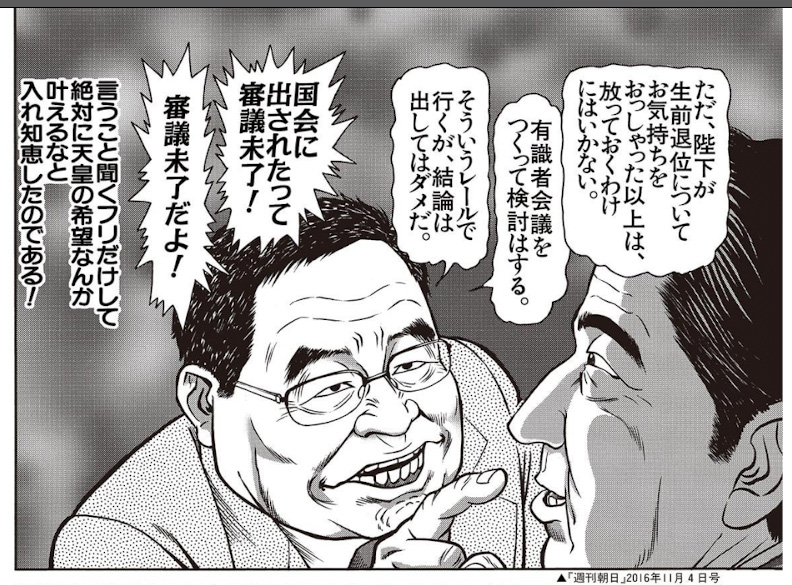 「天皇論 平成29年」を読んだ方は、上皇陛下(当時(平成)の天皇陛下)の生前退位のご意向を潰すよう、亀井静香が当時首相であった安倍晋三に入れ知恵するシーンを強烈に覚えていると思います。