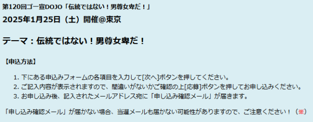 ライブといえば1/25(土)にゴー宣DOJO「伝統ではない!男尊女卑だ!」が開催されます!