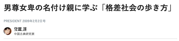 いよいよ明後日となったゴー宣DOJO「伝統ではない!男尊女卑だ!」を前にして、「男尊女卑」という言葉自体についてあれこれ考えたり読んだりしていたら、この言葉は観念を表しただけのものではなく、中国の古典「列子」に端を発している事を知りました。
