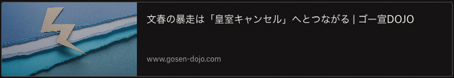日本におけるキャンセル・カルチャー体質蔓延における最大の危惧は、それがいずれ「皇室キャンセル」につながる(既につながり始めている)事にあります。週刊文春を含めた文藝春秋社は、過去に最も多く宮内庁からの抗議を受けている、皇室バッシングの急先鋒。極めて「公を損なう」存在と言えます。