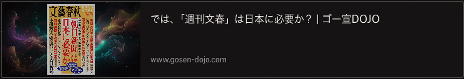 昨年の5月に開催された第115回ゴー宣DOJO「週刊文春を糾弾せよ!」に前後するなどして、私も文春への批判記事を何本もアップしてきました。