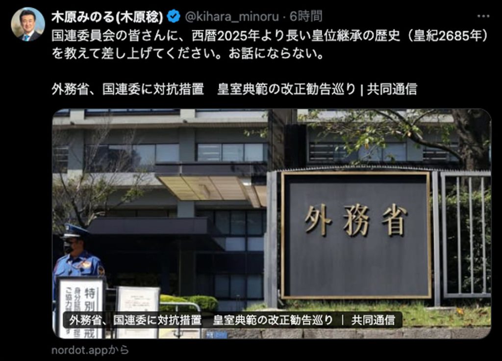国連の女性差別撤廃委員会勧告への日本政府の対抗措置に関して、貴兄の下記ポストを拝見しました。