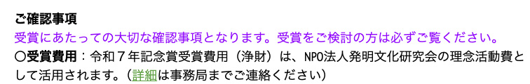 あーこれ、「受賞するために〝料金を払う〟」タイプの賞だったんだ!3万円はやけに安いけど「浄財」という表記には色々オプション性もありそう…。