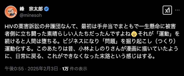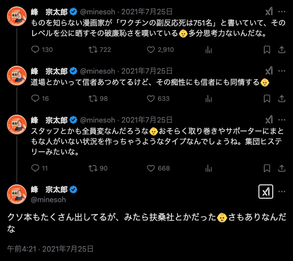 この峰という人物は、運動の是非以前に、権威・権力の威を借りて自分を絶対的な高みに置き、庶民や異論者に対して反論ではなく見下しの暴言を投げるというクセがあります。