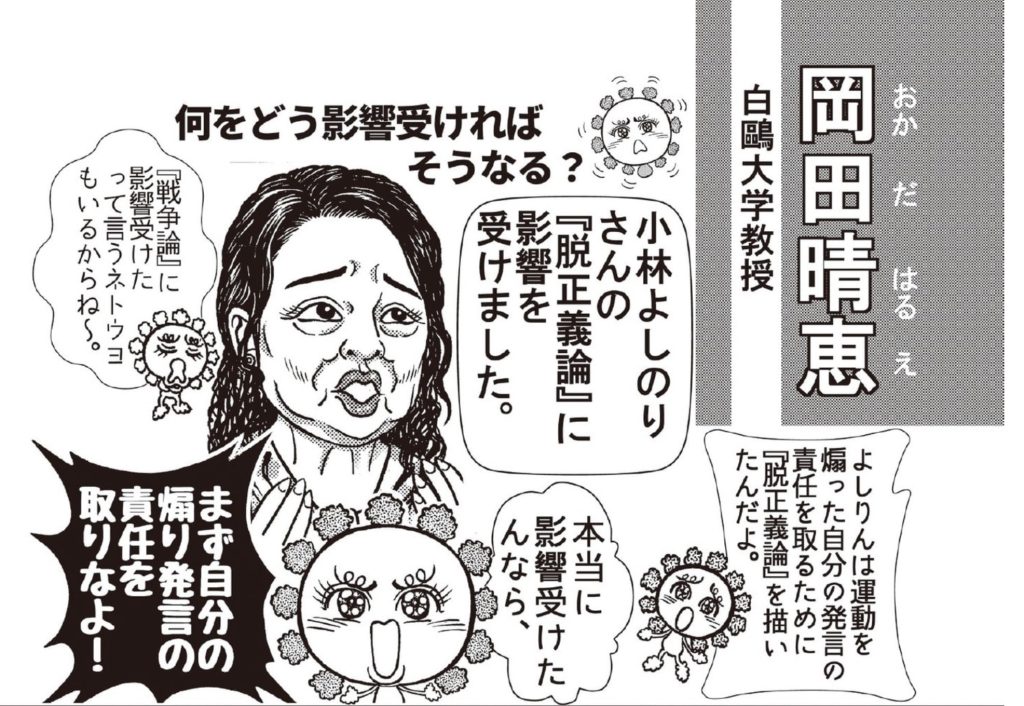 脱正義論と言えば、テレビでコロナ煽りの急先鋒となっていた岡田晴恵も、脱正義論に影響を受けたと語っていました。