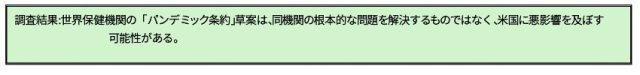 また報告書ではWHOの「パンデミック条約」の草案は米国に悪影響だと結論づけ、米国は特に医薬品、医療用品について中国への依存度を下げるべきと提言しています※⑤⑥。こういう危機管理は海外依存度の高い日本こそ真剣に議論しなければならないはずですが、日本でのWHO議論と言えばビルゲイツの陰謀論など幼稚な議論に靡く傾向があり、単に彼もまた名誉欲に囚われた一人の医学洗脳者に過ぎないという当然の前提が顧みられないものとなりがちです※⑦。