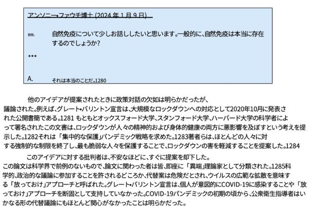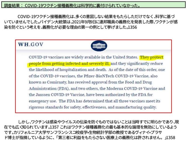 Ⅳには重要な記載があり、コロナ感染後の自然免疫の有効性が無視されたとあります。感染させるがままの「放っておけアプローチは危険」と見做したバイデン政権を非難し、実は自然感染が最も効果的だったという複数の研究結果が示されています※⑤⑥。科学が一切なく、ワクチンを求める大衆迎合の政治だけがあったことでは、米国も同じだったことがよく分かります。