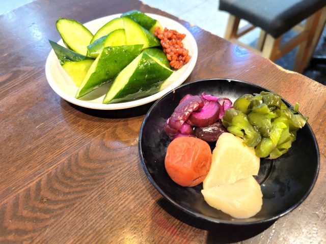 他にも、足が10本ある白い軟体動物をぶつ切りにして塩焼きにしたもの、各種のフレッシュな野菜を特殊な溶液に付け込んだものなどが、特に最高です。