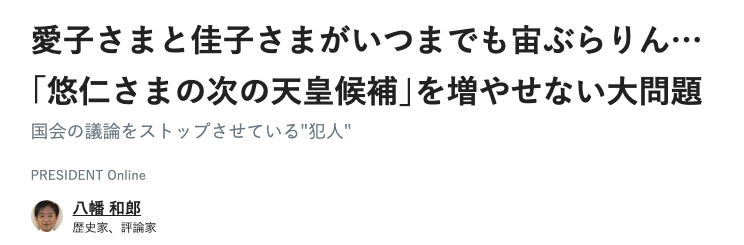 高森先生の連載もある媒体だからあんまり悪く言いたくないんですが、昨日の元木昌彦に引き続きプレジデント・オンラインの皇室記事が酷い。
