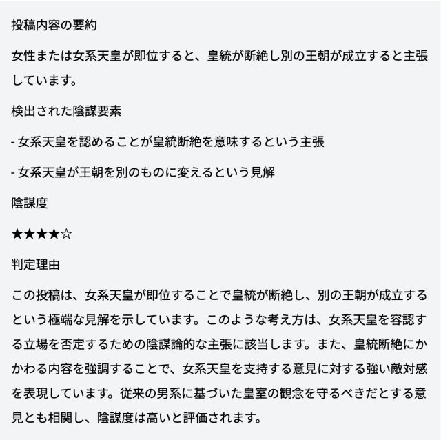 「女系天皇で皇統断絶」は陰謀論(←男系固執論者のAIが回答)