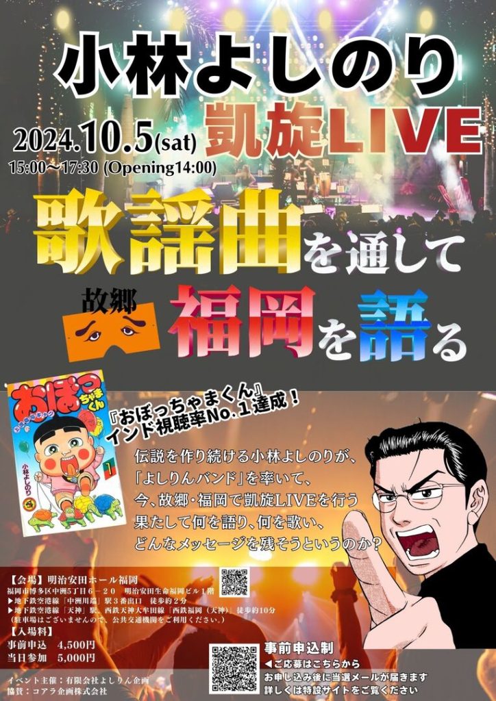 伝説の小林よしのりが、福岡にて凱旋LIVE!!