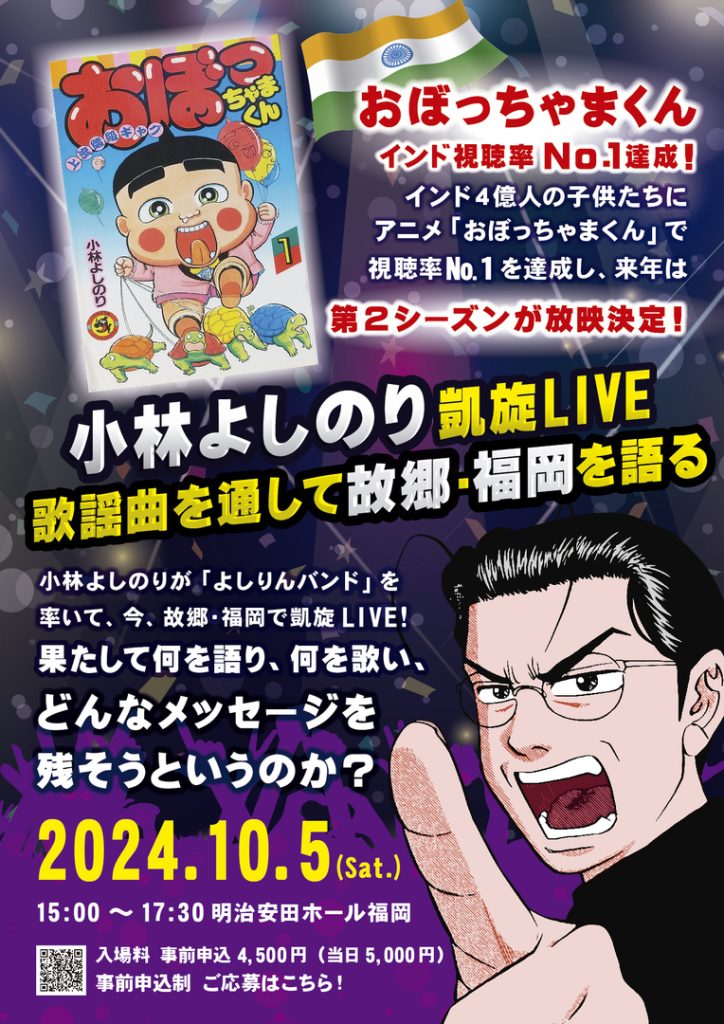10月5日(土)、よしりん先生が生誕の地・福岡でLIVEを開催します!!