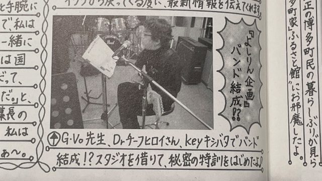なんだか微妙に、編成が現在のよしりんバンドに似てる!あと、先生が弾いているのがエレキギター(たぶんストラトキャスター?)なのも気になる!