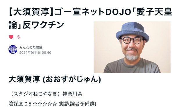 で、皇位継承に関する所はこれ位しかなく、残りは(DOJOブログに書き始める前の)コロナに関するつぶやきを集めた形に。何か結局「ワクチンやマスクに懐疑的な人間を陰謀論者と呼びたかったんだなー」という印象です。