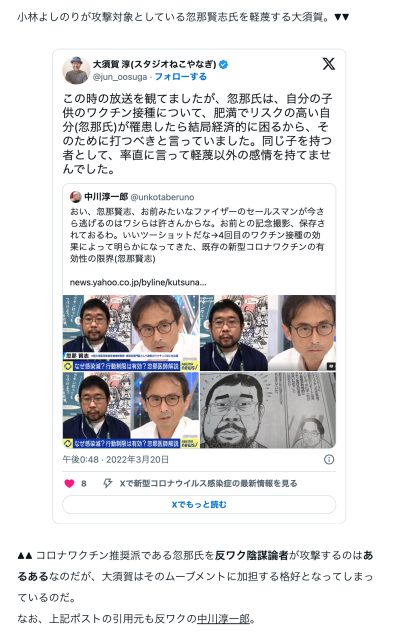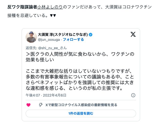 よりによってこの件を「反ワクムーブ」のネタに持ってくるのは、感性が鈍いですよ。もっと根本の生命観に通じる部分なんだから。